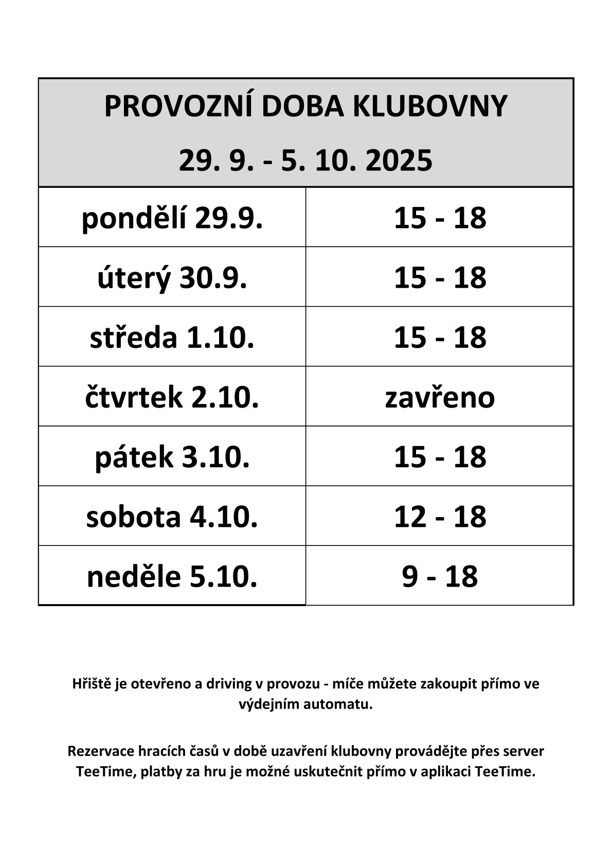 Hřiště i driving range jsou Vám k dispozici samozřejmě i mimo tyto časové úseky, je ovšem potřeba respektovat specifické platební metody. Jednoduchý návod naleznete níže: